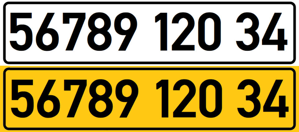Prenons l’exemple de plaque suivant (plaque avant blanche, plaque arrière jaune) :